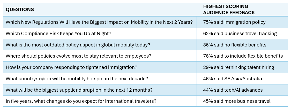 Following a lively dialogue on how to expand the connected community in global mobility, the final session of the Fall BAMM meeting was an interactive audience poll on key concerns in global mobility, and responses from experts to trends, concerns, and what to expect for the balance of 2025 and into 2026.